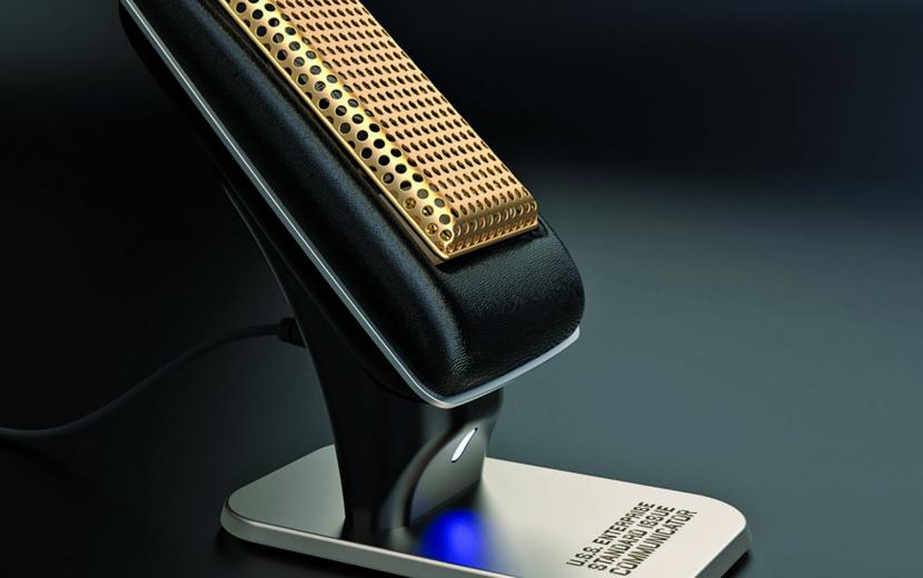 Star Trek fans can emulate Captain Kirk with the Star Trek Communicator from the Ward Company. The Bluetooth device is manufactured with zinc diecast parts and replicates the device Captain Kirk used on the USS Enterprise. It can be paired with a phone to make actual calls or be used as a speaker.